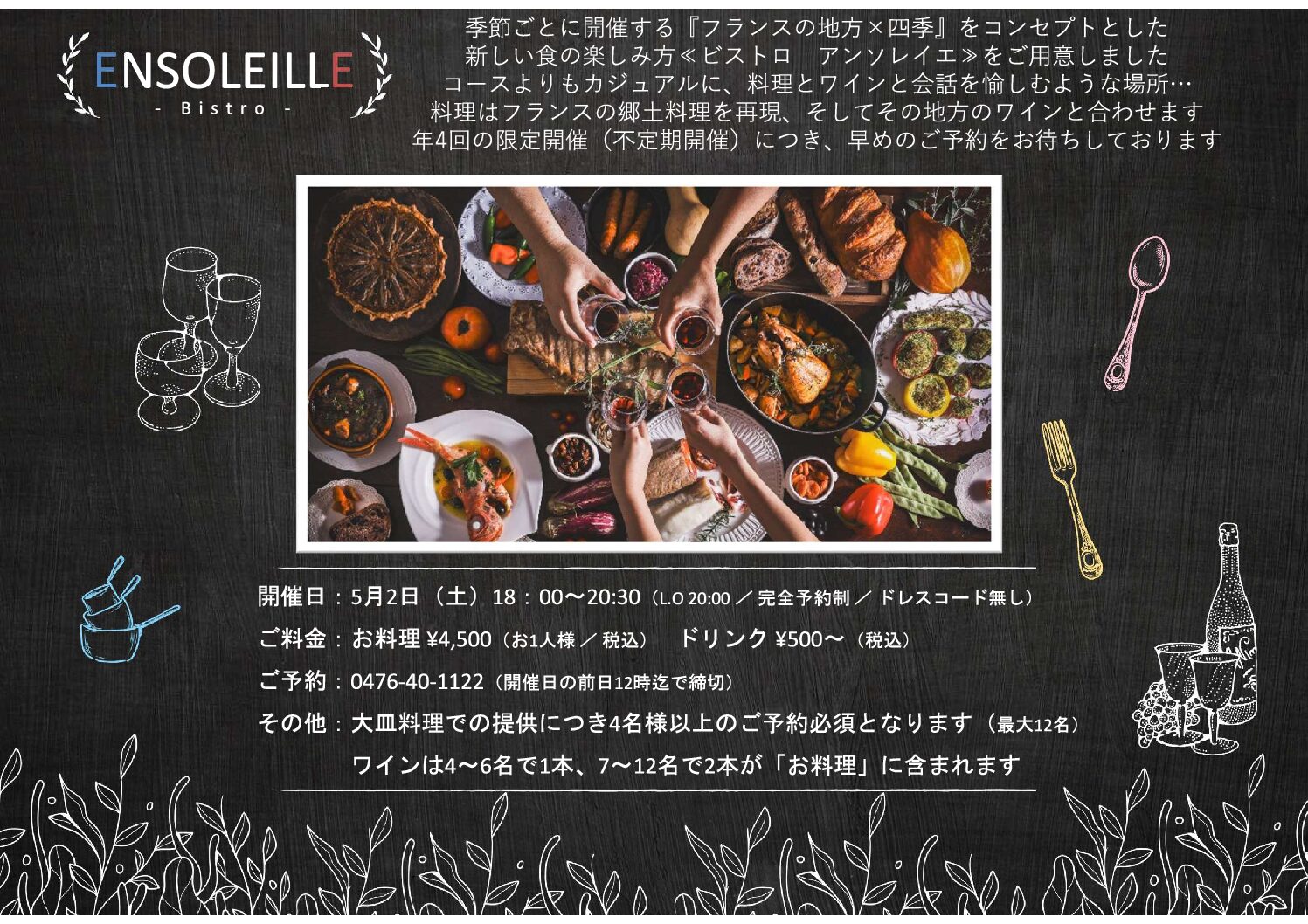 2026.03.02 アンソレイエ5月レストラン情報 ~ビストロ アンソレイエ~ < 前へ 一覧 ブログテーマ一覧 プラン NEWS ランチ ディナー 過去の記事 2026年3月 2026年2月 2025年11月 2025年3月 2025年1月 2024年1月 2023年11月